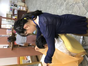 昨日、今日職場体験の中学生が来ています 1日目はウィッグを使ってアイロン、コテで髪をセットしてもらいました 2日目はカラー剤で試験用の毛束を染めてもらい 自分達の髪をセットしあいっこしてもらいました いい体験になればヨカッタです 職場体験