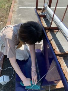今西です うちの枝莉子。なんでやります! 今回は塗装! 店の看板がかなり古いなっていたのでキレイにすることになりました。枝莉子が(笑) まずは古い塗料を剥がします。グラインダーも使いました ローラーでキレイに塗装できてます なかなかの腕前です 完成はまたアップしますね 枝莉子お疲れ様でした👍 なんでもやります